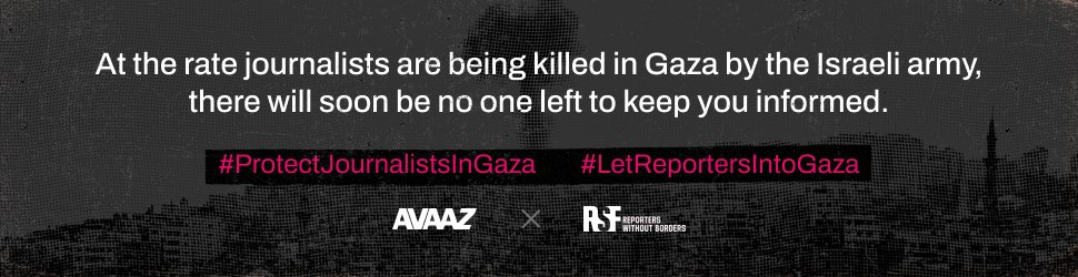Hundreds of media outlets, brought together by the campaigning platform Avaaz and Reporters Without Borders (RSF), are waging a campaign calling for the protection of Palestinian journalists in Gaza, the emergency evacuation of reporters seeking to leave the Strip, an end to impunity for Israeli crimes against Gaza’s reporters and that foreign press be granted independent access to the territory.