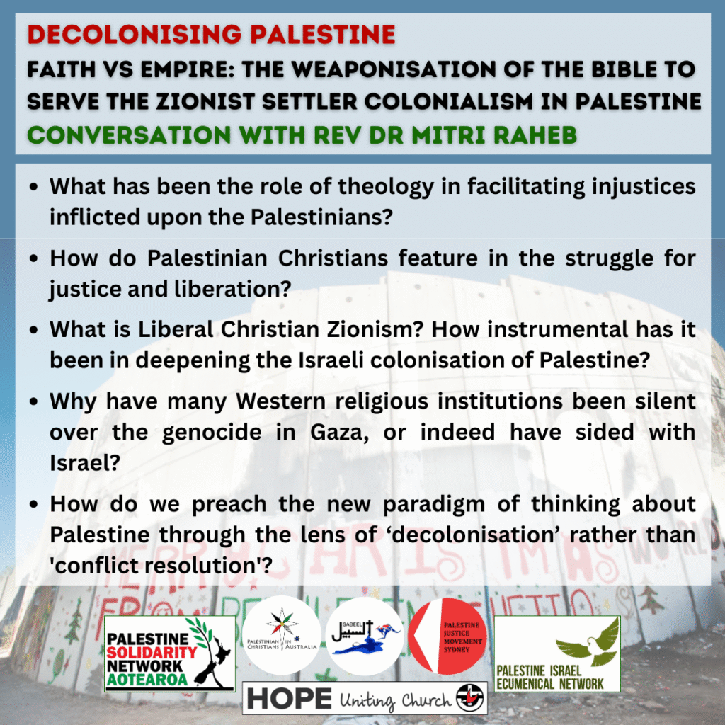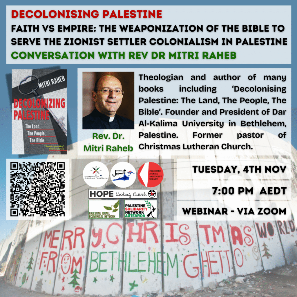 Decolonising Palestine Registration – https://events.humanitix.com/decolonising-palestine-conversation-with-rev-dr-mitri-raheb